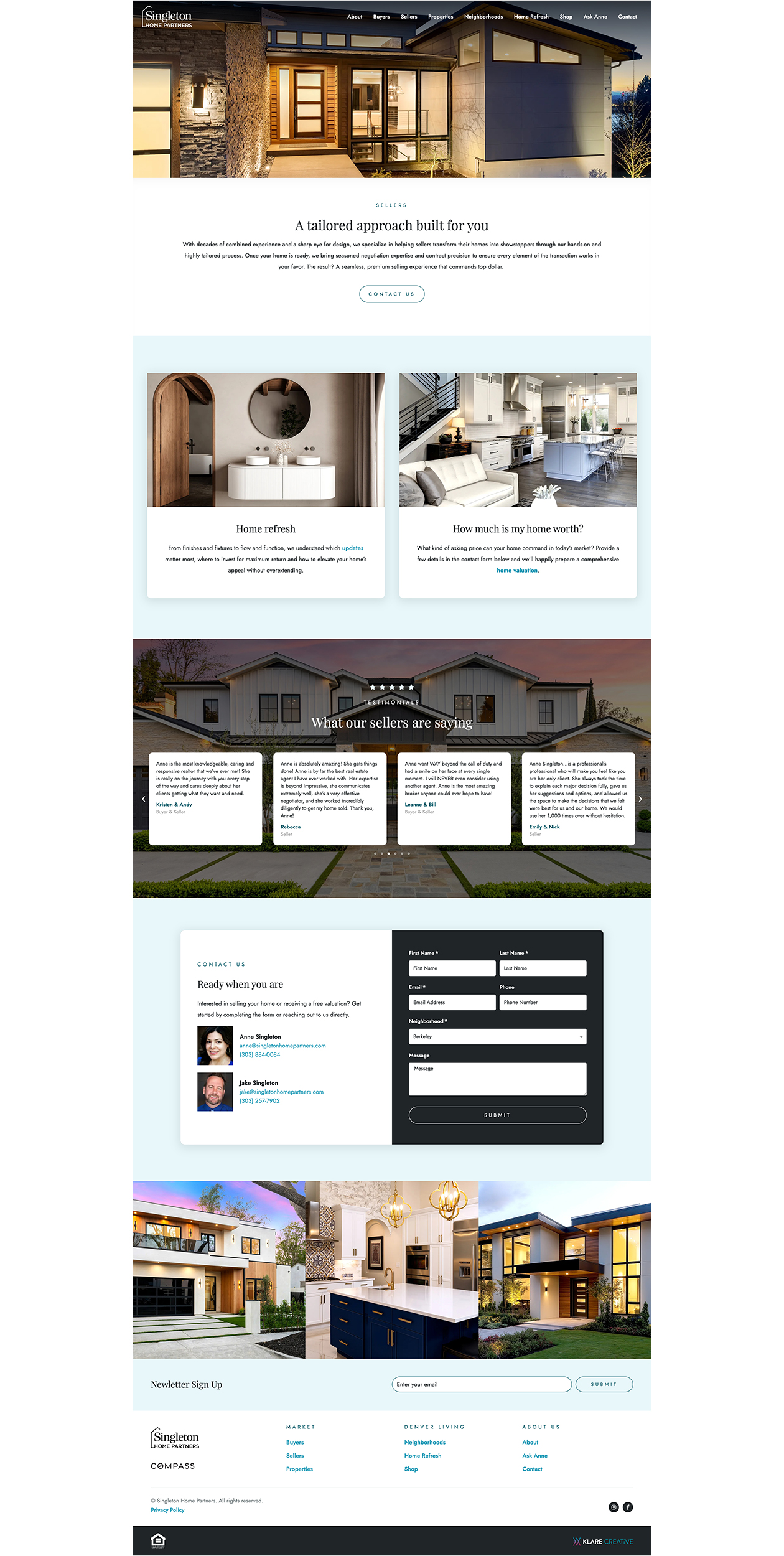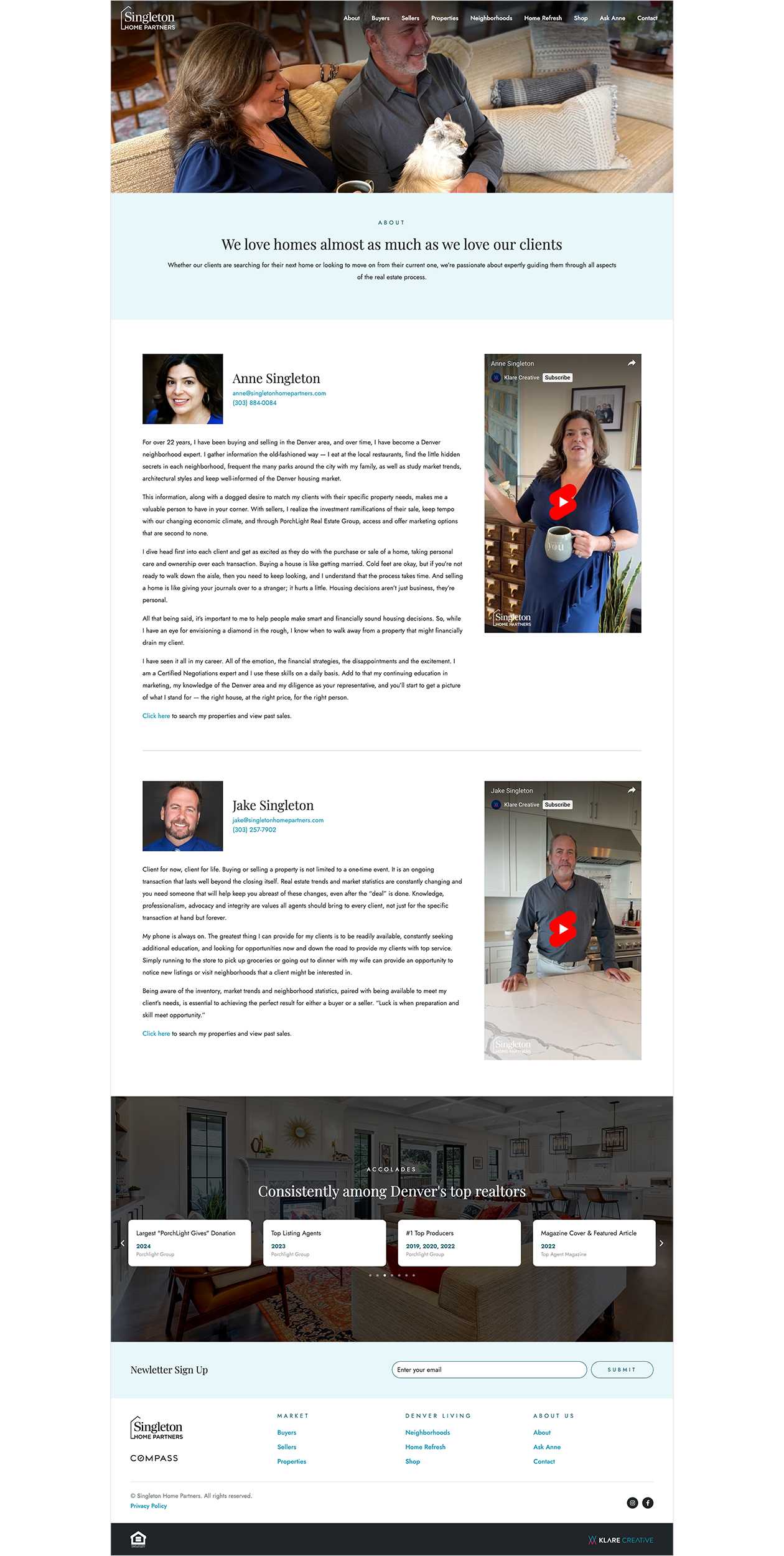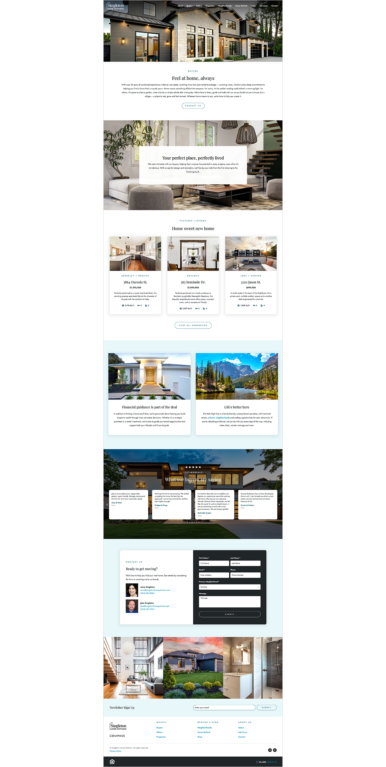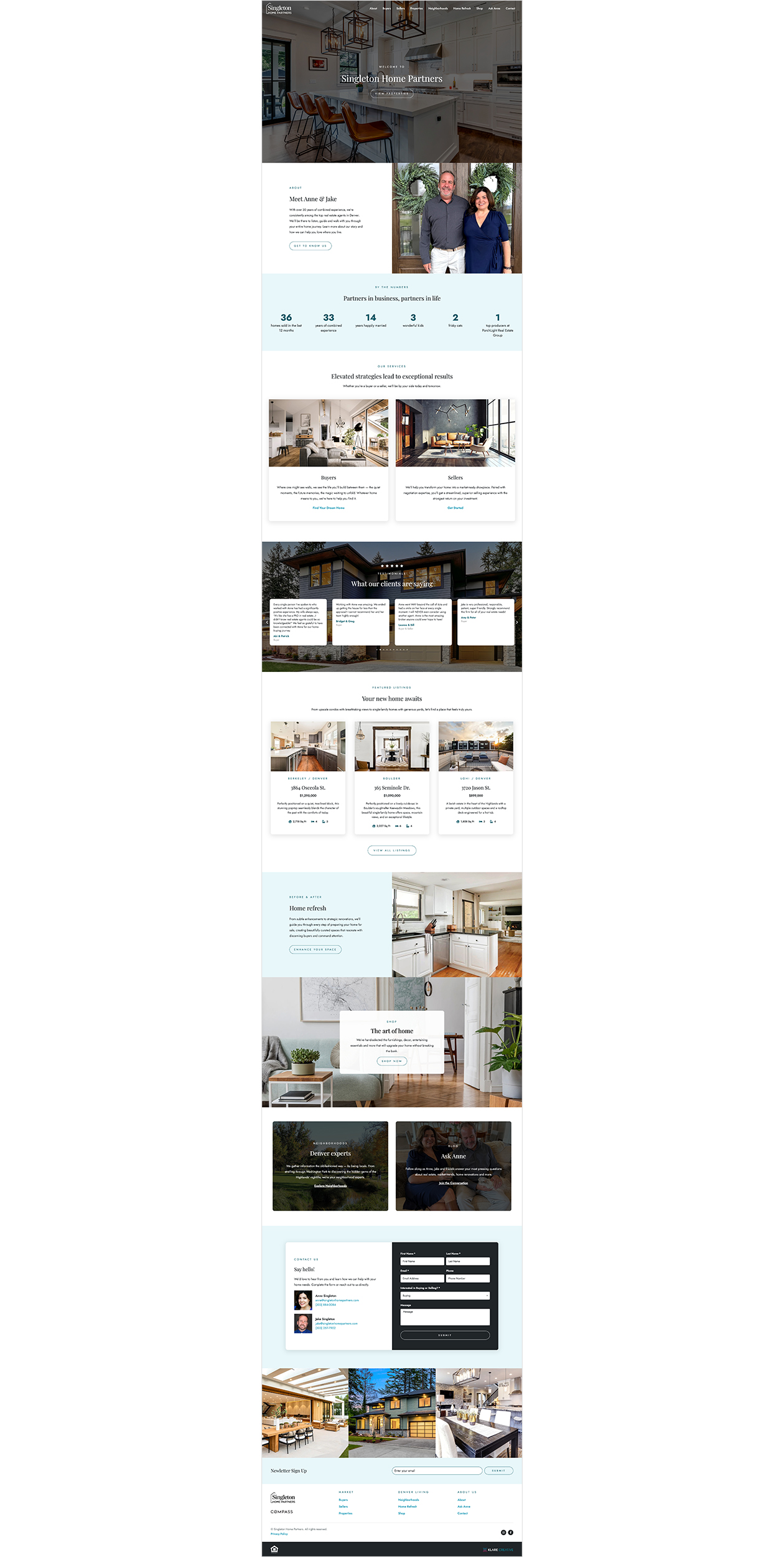 With over 30 years of combined experience, the married duo of Anne and Jake Singleton is consistently among the top real estate agents in Denver. Although they operate within a larger brokerage firm, Anne and Jake wanted a standalone website that demonstrated their unique benefits as real estate agents. We created a website that embodies their values, balancing sophistication and expertise with relatability and integrity.