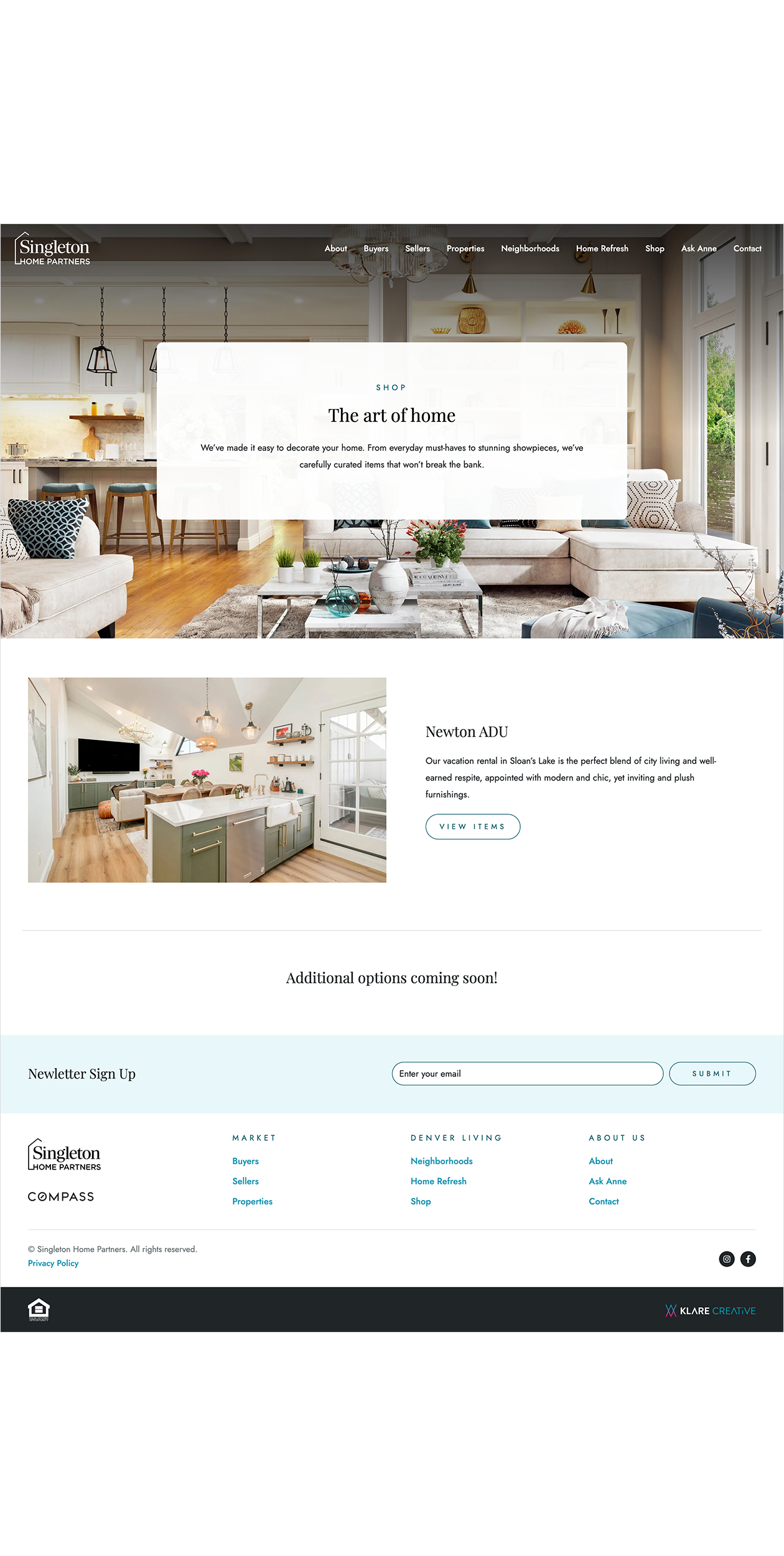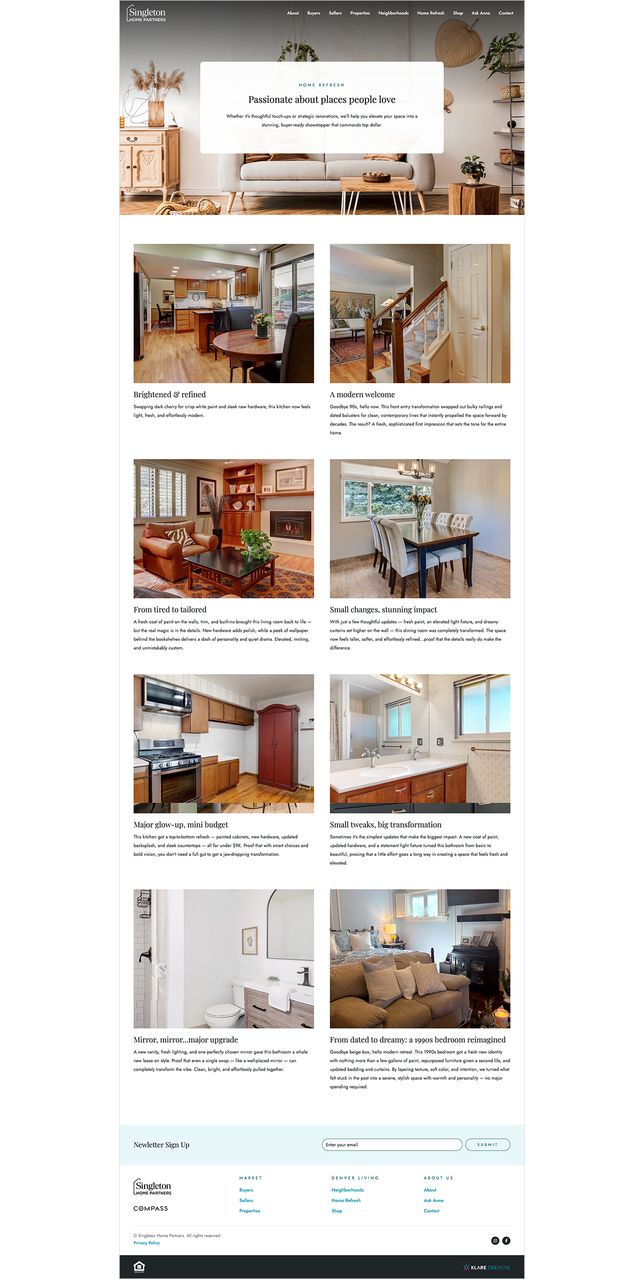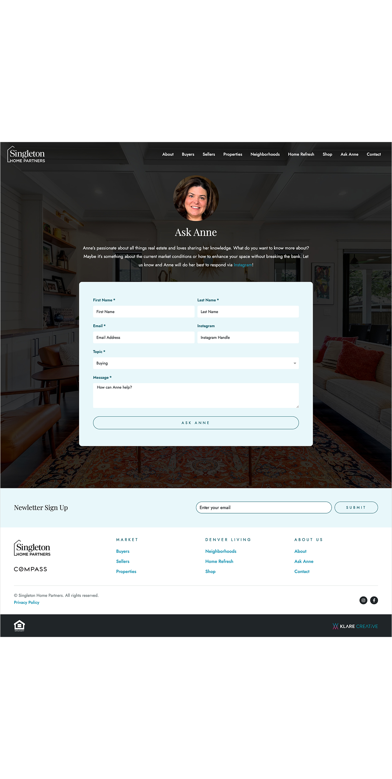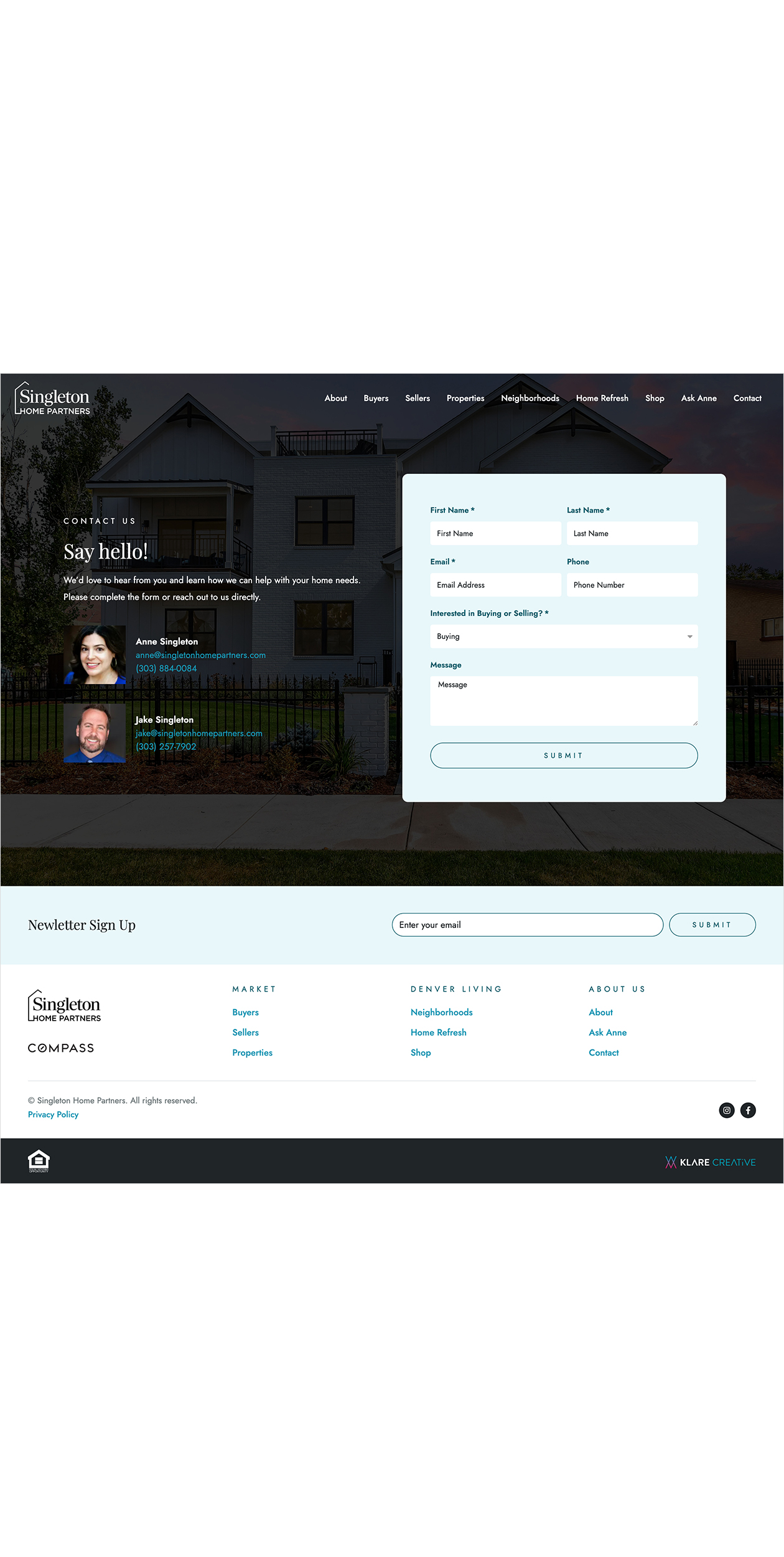 With over 30 years of combined experience, the married duo of Anne and Jake Singleton is consistently among the top real estate agents in Denver. Although they operate within a larger brokerage firm, Anne and Jake wanted a standalone website that demonstrated their unique benefits as real estate agents. We created a website that embodies their values, balancing sophistication and expertise with relatability and integrity.